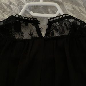 RW & Co. Sheer black blouse with lace insert at chest. Curate little buttons at the back. Size small. Worn only once.