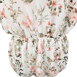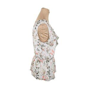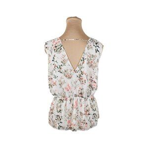 RW & Co White Floral Flowy Lightweight Waist Cinch Blouse Sz S