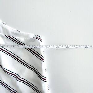 New With Tags: RW & Co. Tank Top Diagonal Stripe Spaghetti Strap Lined Blouse. Women's M. White/Burgundy/Black. Scoop bottom edge. Pretty top to wear with a black pencil skirt for a cocktail party, or wear a blazer or cardigan over it with some dress pants for work. Please see photos for approximate measurements.
