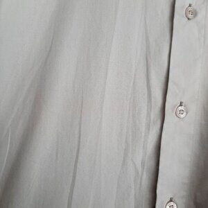 • Short sleeve button down shirt in light grey. Nice minimalist style that can be dressed up or down.