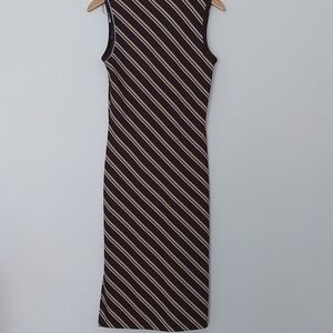 RW&CO 90s/Y2K Midi Bodycon Dress Vneck with Diagonal Stripes. No Size or Fabric Tag. Feels like a polyester/Spandex blend. Excellent condition.