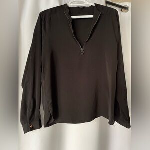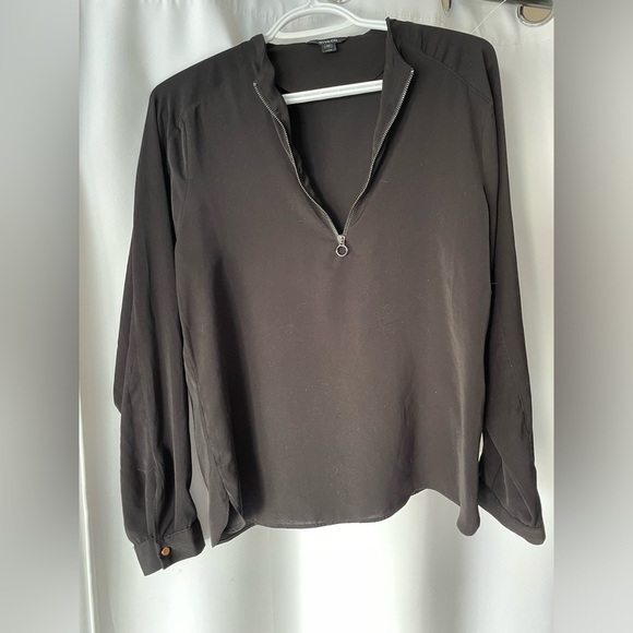 Chic black blouse with a stylish silver zipper. Long sleeves for versatile wear.