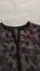 Chic blouse with a unique black and purple pattern. Features a sleek neckline.