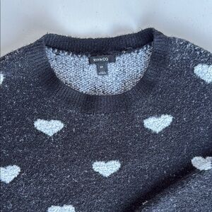 RW&CO. Black and White Crew Neck Sweater with Heart Pattern