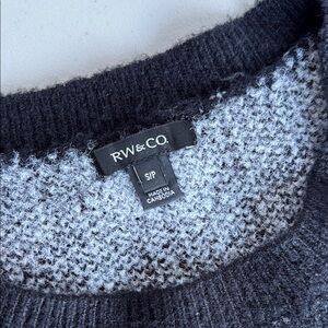 Embrace comfort and style with this RW&CO. sweater, featuring a classic crew neck and a charming white heart pattern on a black backdrop. The long sleeves and soft texture make it perfect for cozy days, while its relaxed fit ensures a laid-back yet fashionable look.