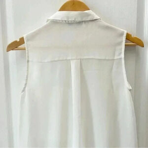 RW&CO Blouse Sheer Sleeveless Shell White Button Front Shirt Size XS