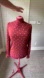 Stylish burgundy blouse with white polka dots. Features long sleeves and a ruffled neckline. Perfect for versatile wear. Very comfortable.