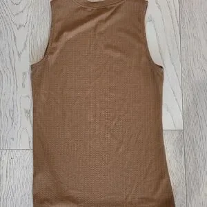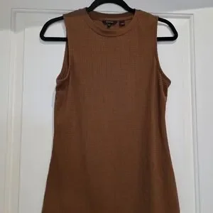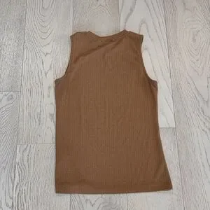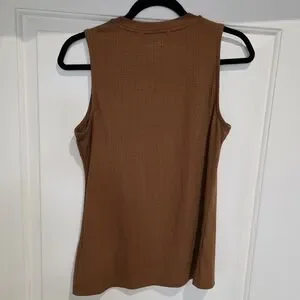 Elegant chestnut ribbed knit top. Ideal for versatile styling.