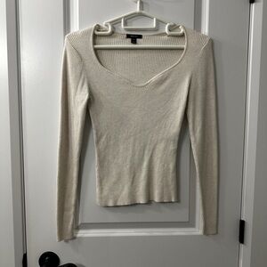 RW&CO. Cream Ribbed Knit Top.
