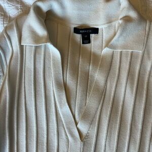 RW&CO cream v-neck collared sweater/shirt. Stretchy, slim fitting. Size small, worn once.
