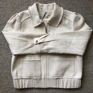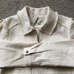 Long sleeve, fully lined,zippered closure, collar neck line,patch pockets, elastic hem.