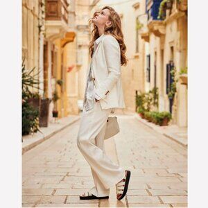 If linen is your favourite summer fabric, this mid-rise pant was made for you, featuring a wide leg that gives out extra style.