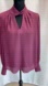 RW&CO Maroon Burgundy pleated Twisted-Mockneck peephole Blouse long sleeve Sz M