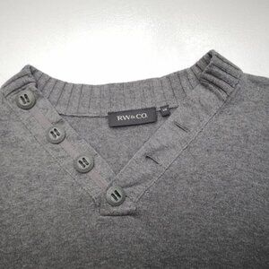 RW&CO. Men's Size Large Grey V-neck with Buttons Straight Fit Sweater