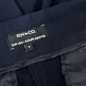 RW&CO. Pant Trouser Cigarette Slim Leg Navy Back Pockets Cotton Blend