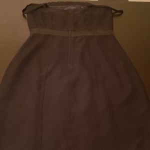2 options to wear strapless or with tue straps Ruffle front dress . Sheer overlay over a polyester underlay. Satin band under the bust/ upper waist for detail. Never worn Excellent condition