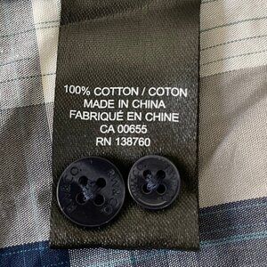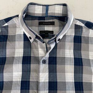RW&CO. Slim Fit 100% Cotton Button Down Plaid Shirt Navy White Grey Sz XS