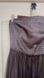 This exquisite RW&CO dress is a perfect choice for prom or wedding guest! Featuring a sleek dark silver color and a strapless neckline. The fit and flare silhouette is enhanced by a tulle overlay, while the hem is adorned with intricate pink floral embellishments, adding a touch of elegance to your evening. Hooks in place to add shoulder straps.
