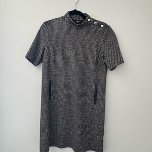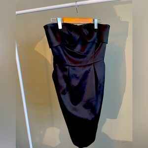 Stylish blue dress with stretch lining. Ideal for cocktail parties, weddings, or the theatre. Has exposed back zipper and pockets. Fully lined. Only worn a few times.