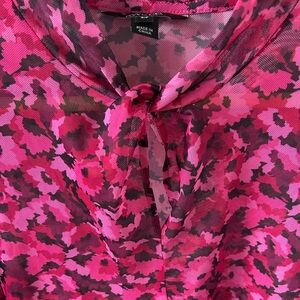 RW&CO. Vibrant Pink and Black Floral Blouse