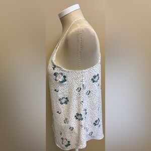 RW&CO White Sleeveless Tank Top Floral & dainty Polka Dot Design women's Large