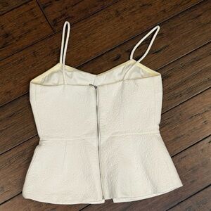 Chic white camisole with textured fabric. Features a stylish cut-out design. Perfect for layering or wearing alone.