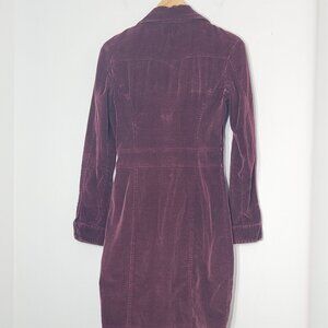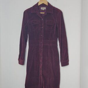 RW&CO. Women's Burgundy Preppy Cotton Corduroy Button Down Collar Midi Dress Sz0