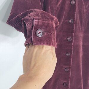 RW&CO. Women's Burgundy Cotton Blend Corduroy Preppy Button Down Collar Midi Shirt Dress Private School Cottagecore Size 0