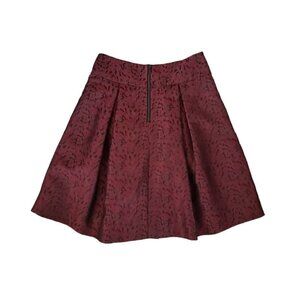 RW&CO burgundy floral jacquard pleated evening a-line skirt