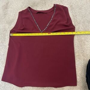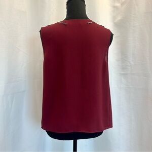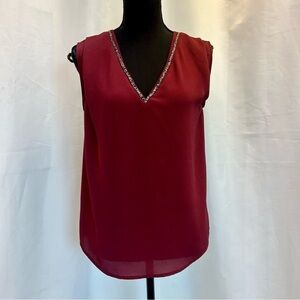 RW&CO burgundy red rock crystal rhinestone V-neck sleeveless blouse Sz XS