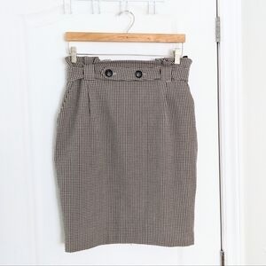 RW&CO stretch lining paper bag style plaid midi skirt brown beige size 12 @i