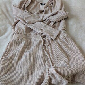 Long sleeve shorts romper. Waffle knit. Made with heavy quality fabric. Super soft and cozy. In perfect condition, no rips or stains.