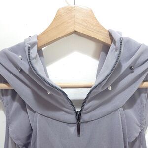Gorgeous dolphin gray sleeveless blouse with a gathered slouch collar adorned with sewn on ivory and pewter tone pearl beads. Collar has a metal zipper closure down the back. Excellent preloved condition no stains or tears. Main body of the top is pretty sheer so you would likely want a cami underneath.