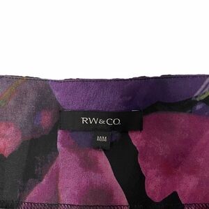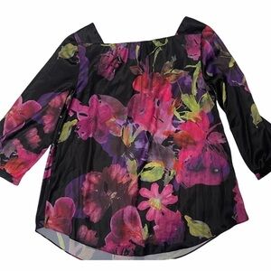 RW&Co. Black Floral Silky 3/4 Sleeve Lightweight Square Neckline Top Blouse
