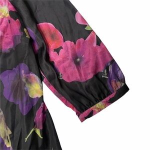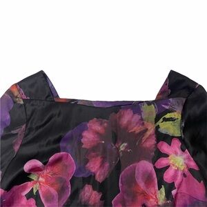 RW&Co. Black Floral Silky 3/4 Sleeve Lightweight Square Neckline Top Blo…