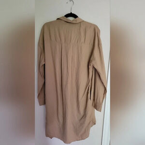 For an effortlessly cool dress option that works dressed up or as a casual outfit, opt for this minimalist long-sleeve shirt dress in a light linen blend fabric.