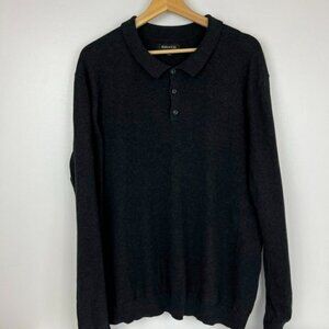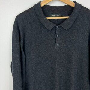 RW&Co Men's XL Dark Gray Collared Long Sleeve sweater Knit 100% Cotton