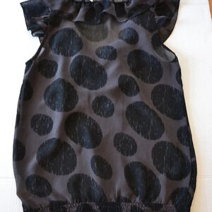 Adorable sheer top, sleeveless with a bow in the middle and gathers at the bottom.