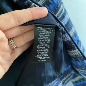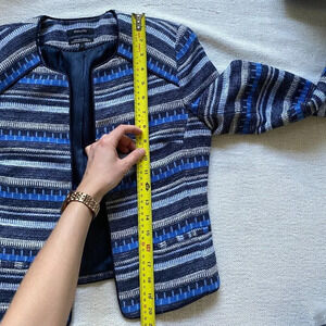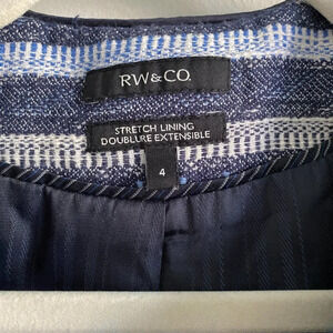 RW&Co Striped Tweed Blue Striped Open Front Cropped Blazer Jacket Size 2