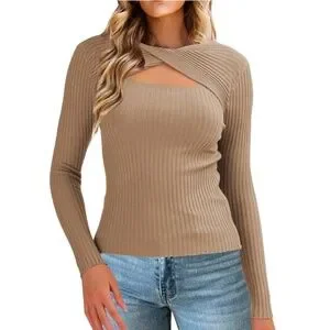 RW&Co ribbed knit long-sleeve sweater with keyhole neckline.