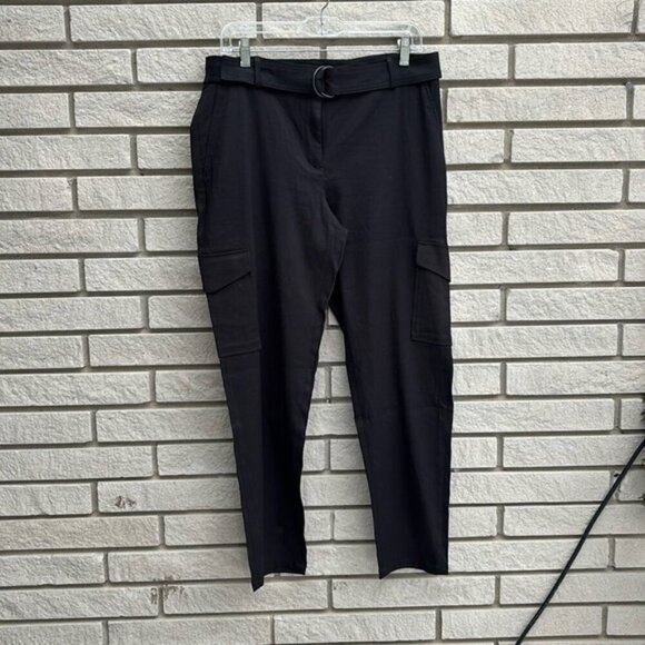 The trend of the season, these cargo pants featuring a sleek tapered leg are perfect for everyday wear. Pair them with a buttoned-down blouse for an easy professional look or with a sweater for a more casual style. Lyocell blend material, front zip closure, belt loops and removable belt, side slash pockets and welt pockets at back, cargo pockets on hips.