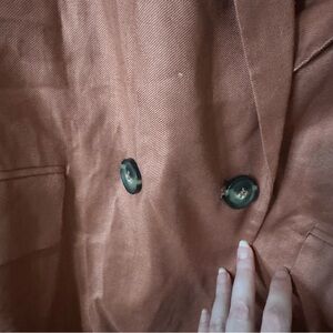 Chic business office rust blazer from RW&CO. Perfect for a polished look. Single-button closure with inner button for security. Ideal for work or casual outings.