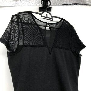 RW&Co black mock neck sheer collar short sleeve tee shirt Medium