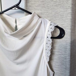 RW&Co draped neck blouse. Lace details on shoulders. White/ecru Size P. Very elegant. Like new