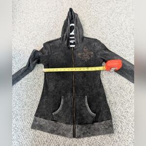 RXB Women's (Size M) Black Waffled Zip-Up Hoodie with Gold Fleur-de-Lis Graphics