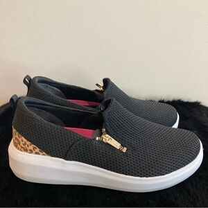 RYKA Sz 9.5W Surround Fit Slip On Chunky Heel Canvas Animal Print Zipper Shoes. Comfort and style. Breathable. New without tags.
