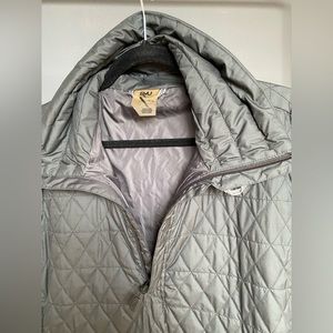 RYU womens puffer pullover. 1/4 zip front with zippers on each side to allow more air flow for the warmer days. Zippered pockets and wrist cuffs.