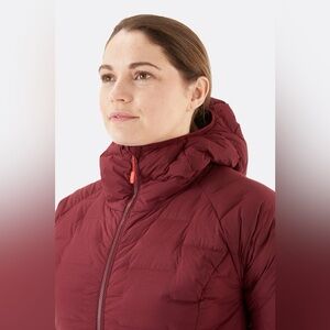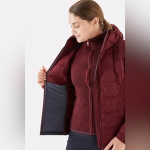Rab Women's Cubit Stretch Down Hooded Jacket Deep Heather Burgundy Size Medium. Good condition.