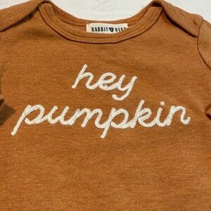 Adorable brown baby onesie with 'hey pumpkin' text. Perfect for fall.