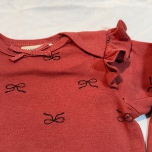 Adorable red long sleeve baby onesie featuring a cute bow print. Perfect for everyday wear.